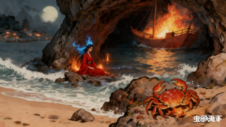 这日姜子牙带着杨戬悄悄摸到礁石群,只见洞里窜出个红衣女子,发间跨越着幽蓝火焰。