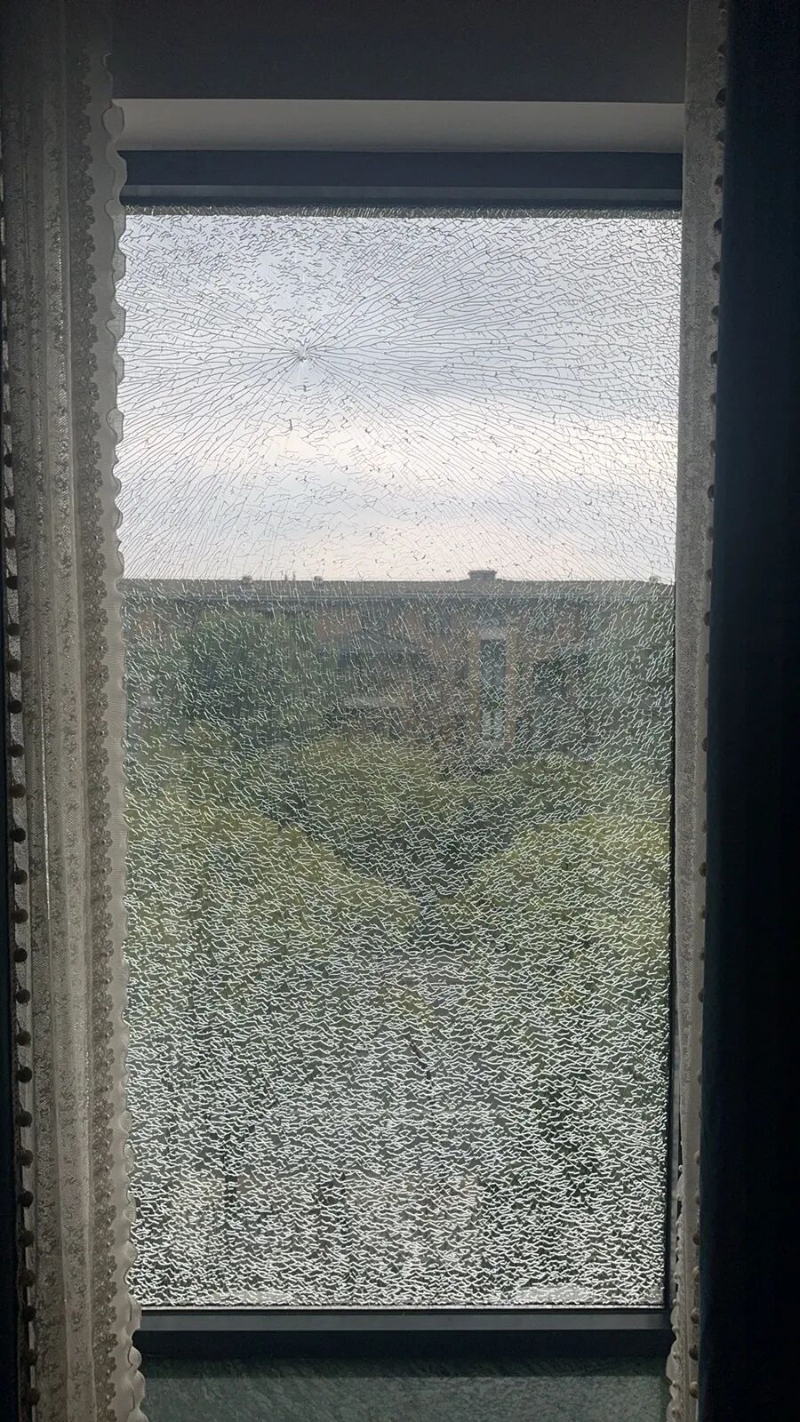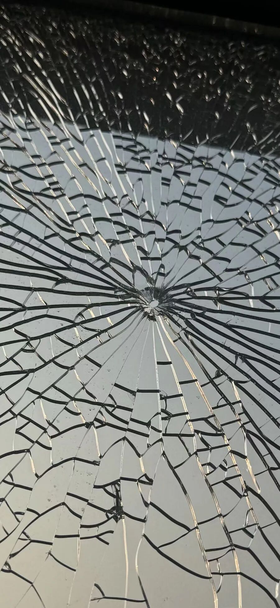 整块玻璃碎成蛛网状,