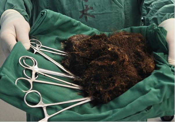 由于头发无法被胃液消化,也很难把它们排出去。在胃酸的作用下,头发与食品残渣过头他胃实质物夹杂,像滚雪球似的越变越大、越变越硬,耐心形成坚韧的“胃石”,在临床上称为“毛石症”。