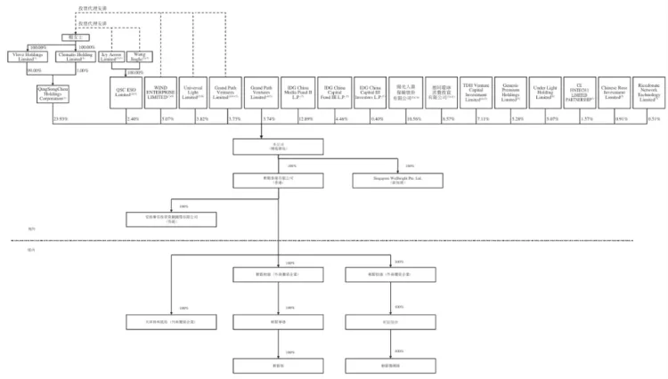 IPO后,杨胤女士透过其全资领有的控股公司QingSongChou握股为20.85%,杨胤女士限制的QSCESO握股为2.09%,Leman KAYA旗下WIND ENTERPRISE LIMITED握股为4.42%,Universal Light Limited握股为3.33%,吴彬旗下Grand Path Ventures Limited握股为6.51%;